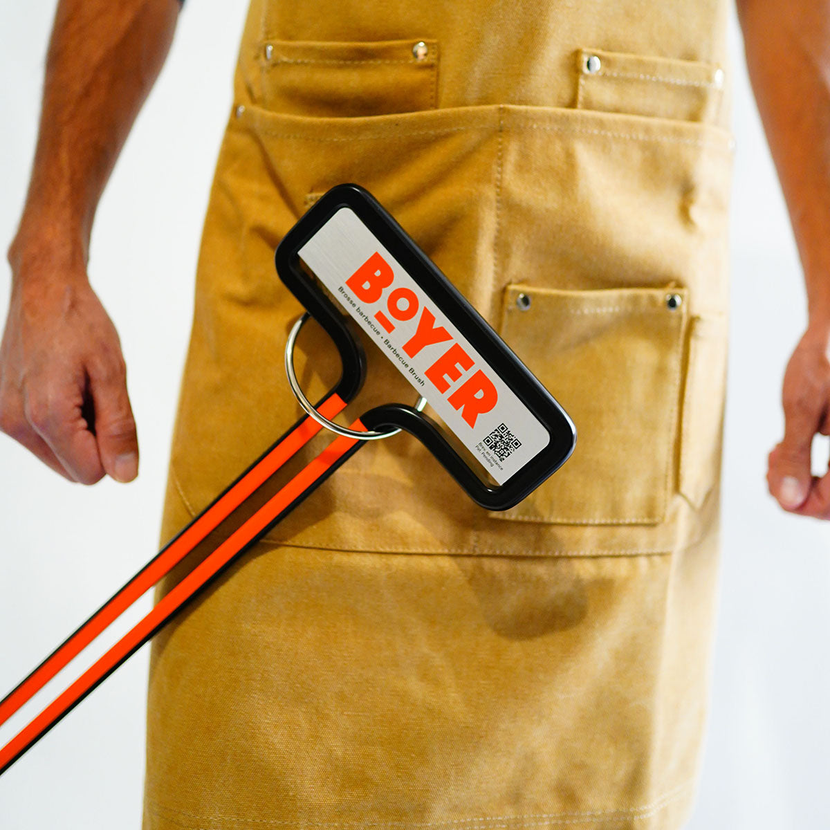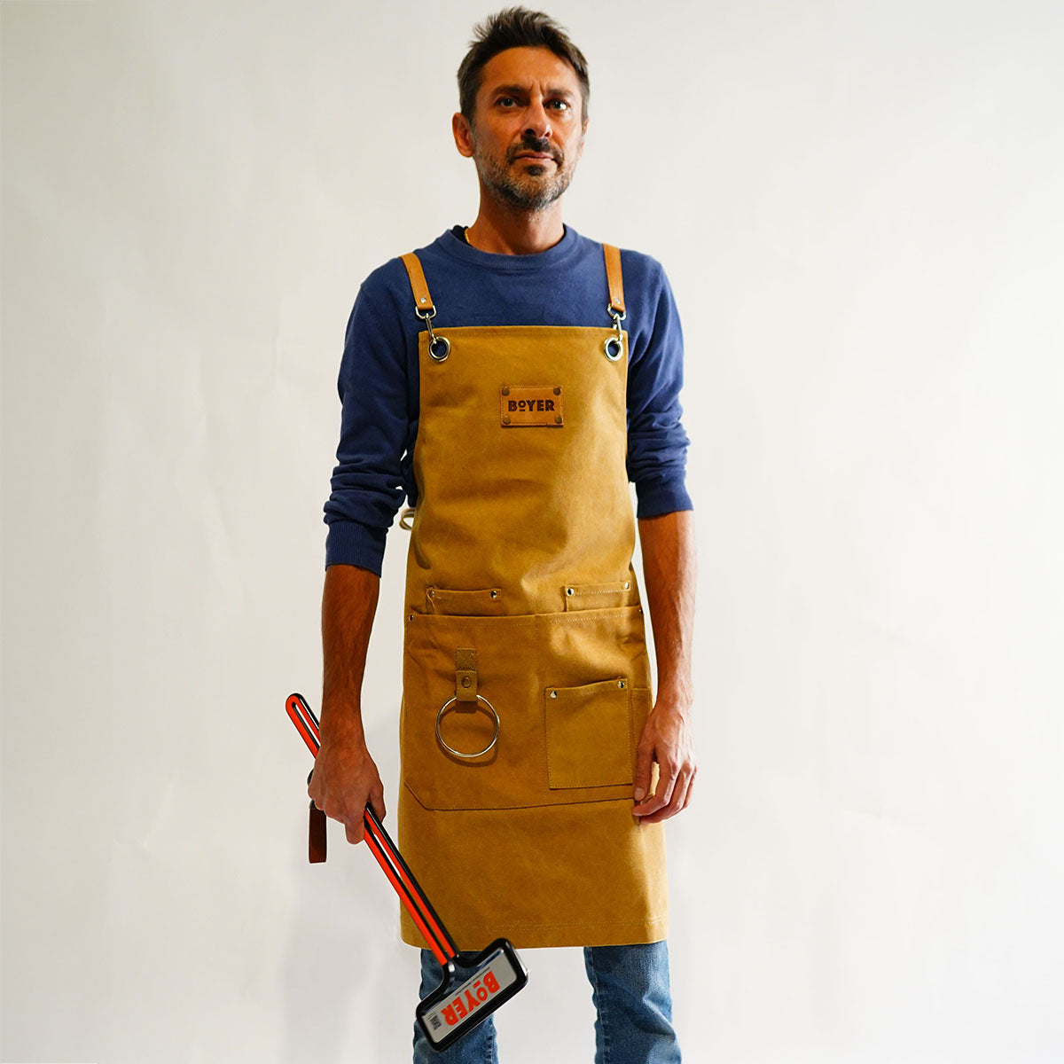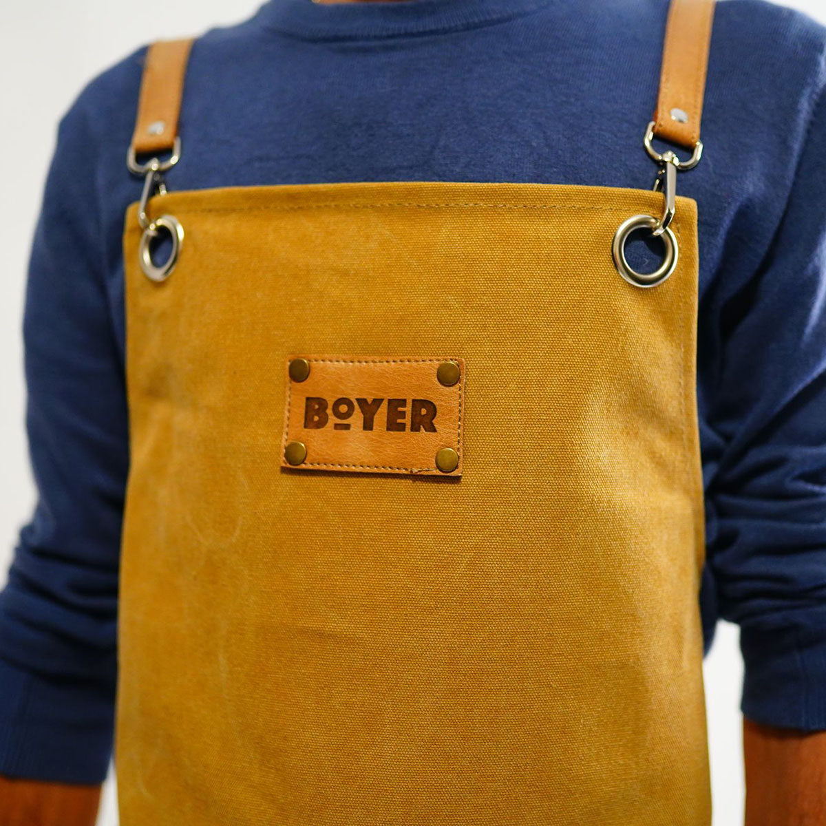 The Boyer Apron is made with resilient materials, featuring cross-back laces for support, five convenient pockets, and a metal ring for your grill brush. Built to endure the heat and keep you organized, this apron ensures you look sharp and stay efficient during every BBQ adventure.