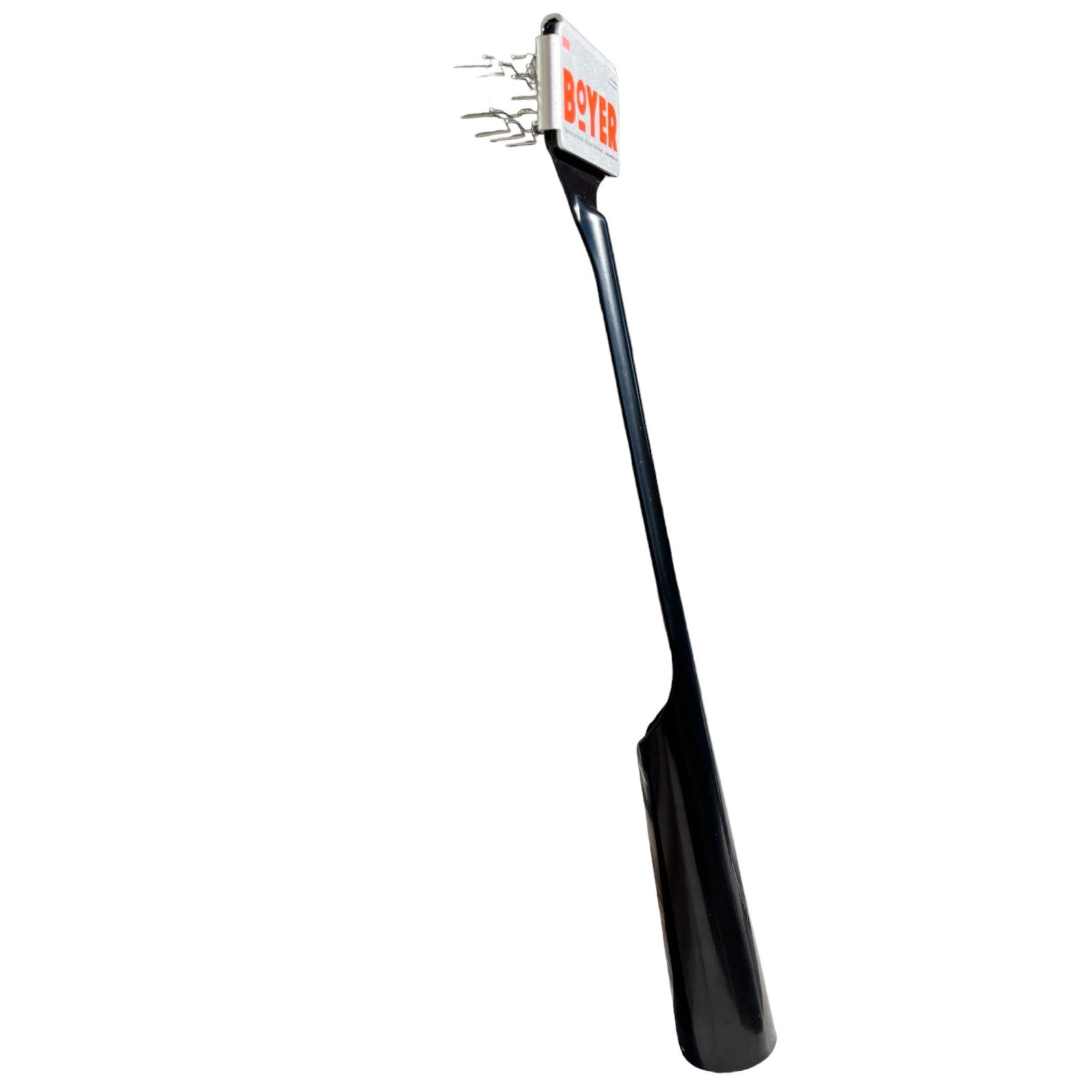 The Boyer Mini™ is designed with both functionality and style in mind. Featuring a sleek logo, it adds a touch of elegance to your grill cleaning routine. It also includes a handy ring at the end of the handle, allowing you to hang your brush for easy and convenient storage.. This brush is as much a stylish accessory as it is a practical cleaning tool.