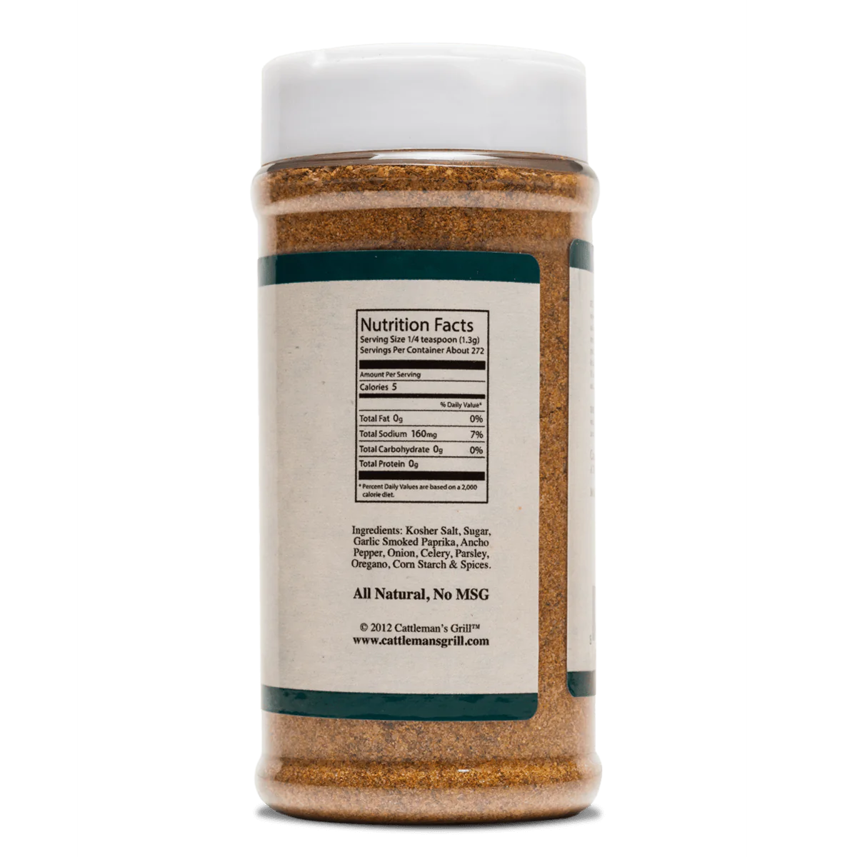 Cattleman's Grill Steakhouse seasoning is a robust blend of Western flavors including garlic, onion, ancho peppers, and smoked paprika.
