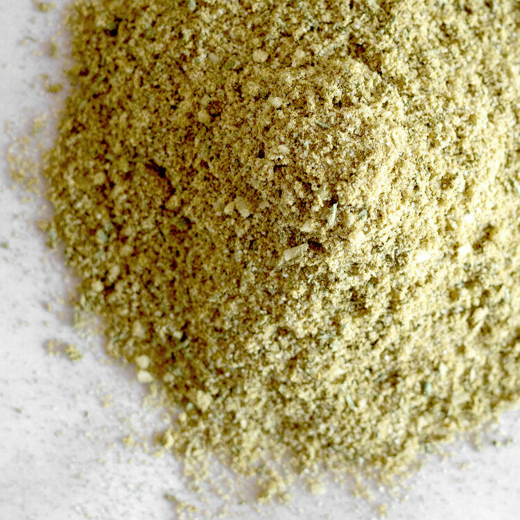 Simple, spicy and flavorful, not much more to say! Use this on everything. The light green flecks look great as a garnish on any lighter colored foods such as fried eggs, French fries, potato salad, pasta, rice, chicken, fish, cream soups… all while adding wonderful flavor!