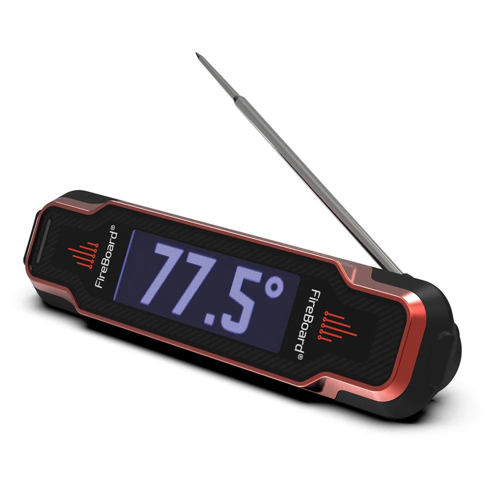 FireBoard® Spark is a highly accurate and fast instant-read thermometer, combined with a leave-in probe port for longer term temperature tracking. Pairing your Spark with the FireBoard Mobile App keeps your temperature data available remotely everywhere you go. WiFi, Bluetooth, and FireBoard Cloud Connected. SyncModeTM is a powerful mode to track other FireBoard devices using Spark as a display. This powerful feature uses the FireBoard Cloud to transform Spark into a beautiful countertop device, making all your FireBoard temperatures available at a glance. Features: Instant-Read thermocouple probe delivers fast and accurate temperature readings External probe port enables monitoring of long-term cooking sessions Sync Mode transforms your Spark into a remote FireBoard monitor NIST-Traceable calibration certificate NFC scanner allows streamlined labeling of instant-readings USB-C rechargeable Li-Ion battery provides 12+ months of normal use WiFi, Bluetooth 4.0 (BLE) and FireBoard Cloud enabled Built-in magnets for easy storage on metal surfaces Specifications: Range: -58 to 572 ̊F (-50 to 300 ̊C) / Accuracy: ±0.7 ̊F (±0.4 ̊C) from -4 to 392 ̊F (-20 to 200 ̊C); ±1.8 ̊F (±1.0 ̊C) full range Resolution: 1.0° or 0.1° user selectable External Probe Port: 10K or 100K Thermistor FireBoard Probes (probe not included) Battery: 2600mAh Li-Ion rechargeable battery Display: 192×64 LCD, Backlit Waterproof / IP66 Dimensions: 6.25″ x 1.4″ x 1.1″ (159mm x 37mm x 27mm) / Weight: 5oz (145 grams) Included in box: FireBoard Spark Thermometer, USB-C charging cable, AmazingRibs Food Temperature Guide, Quick Start Guide FireBoard® Spark comes standard with a 1 year warranty