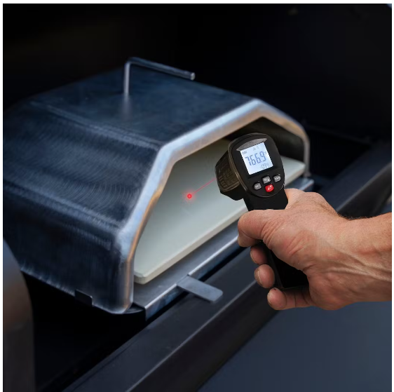 The Green Mountain Grill pizza oven temperature gun is a handy tool that takes the guesswork out of getting your temperatures right for cooking!