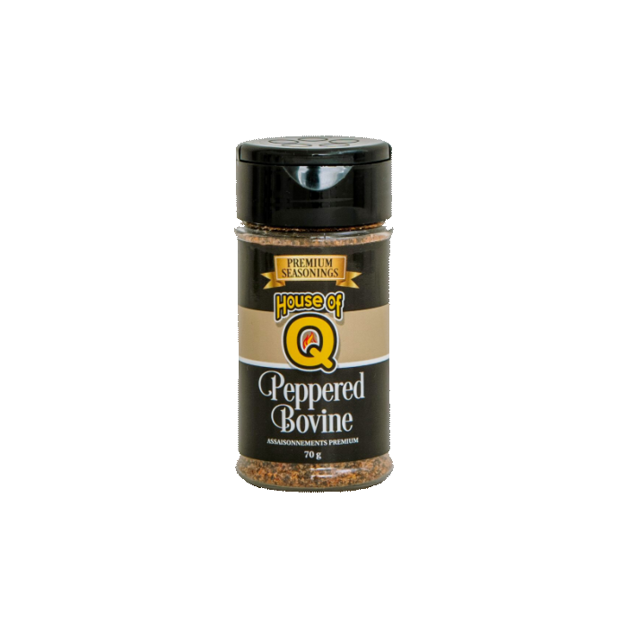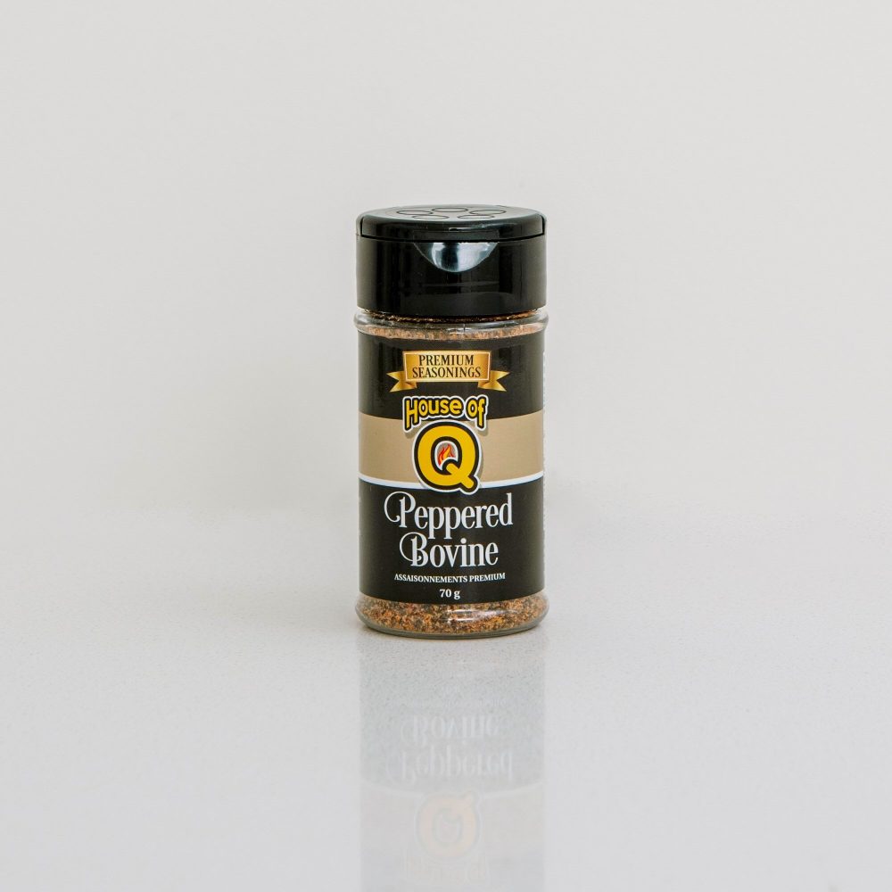 Peppered Bovine is the first in the Premium Seasonings line and is an ideal spice to season steaks and pork chops. It delicately combines the spiciness of black pepper and cayenne with the unique flavour of premium grade, dehydrated red pepper all together bringing out the best natural flavour of beef and pork.