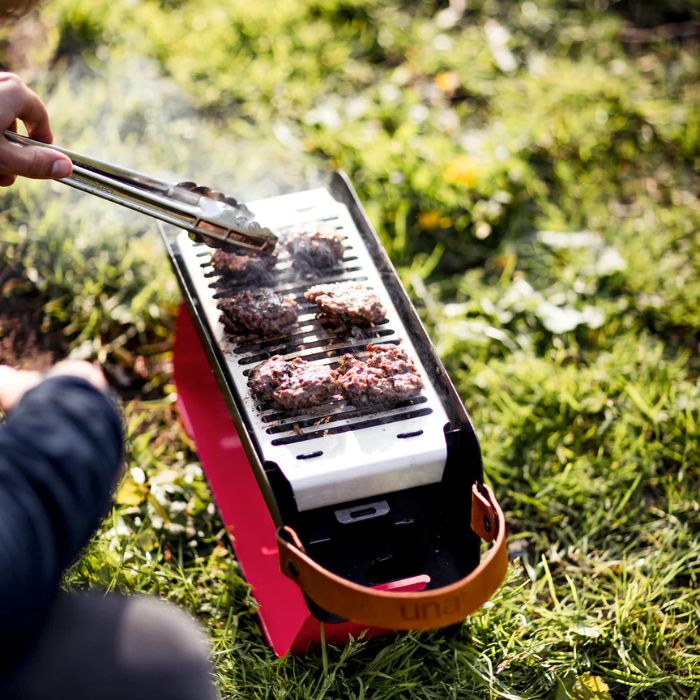 How safe is my UNA Grill? The UNA Grill has been designed to the highest quality and safety standards. It even features a small grill removal tool so that you don't risk burning your fingers. As with all grills, read the safety instructions and use as intended!