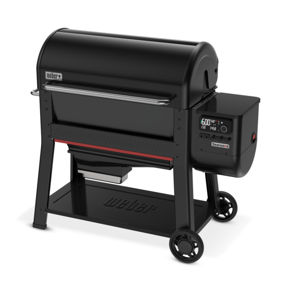 Smoke, sear, roast, and more on the Searwood™ XL 600 pellet grill featuring a full temperature range from 180° to 600°F and DirectFlame™ cooking that creates bold flavourful sear marks and delicious golden browning. The Searwood™ XL 600 pellet grill heats up in 15 minutes or less†, cooks evenly and features a full grate sear zone that lets you get more food on the flame. Cook confidently with intuitive digital controls at the grill and WIFI and Bluetooth connectivity that lets you monitor and control the grill remotely, see live graphs of your cook, get readiness alerts, recipes, and more from the WEBER CONNECT app on your smart phone. Explore new techniques with a rotisserie or griddle insert (each sold separately). Then clean up quickly and easily with the pull and clean grease and ash management system located at the front of the grill.