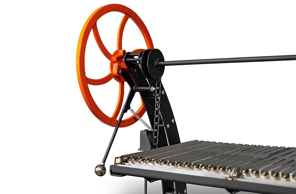 - The 12-gauge stainless steel V-Channel grates direct grease and drippings away from the flame and are height adjustable via the heavy-duty chain drive with 15” of variable travel. This means more precise temperature control allowing the cook to manage the heat level and ensure the meal is cooked to perfection more easily.